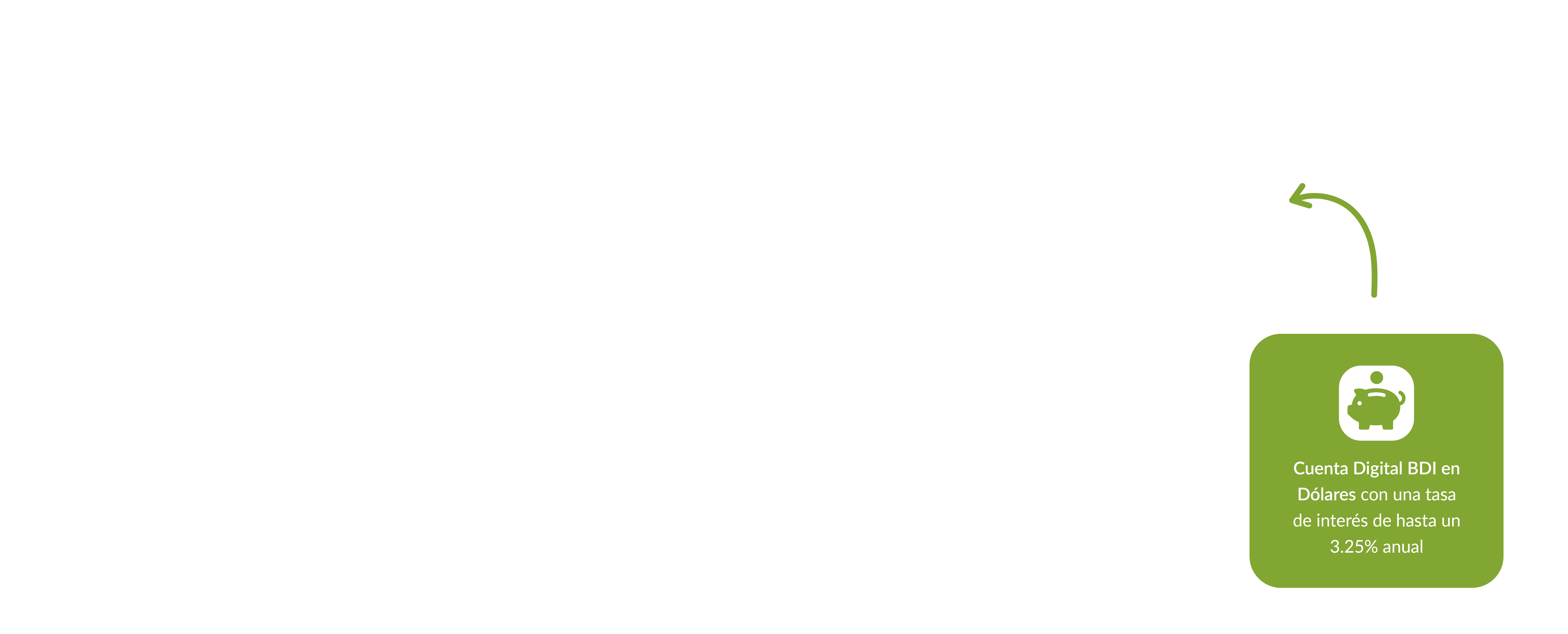 Solicita tu Cuenta Digital BDI, disponible en pesos con hasta un 7.50% de interés anual y hasta un 3.25% de interés anual en dólares.